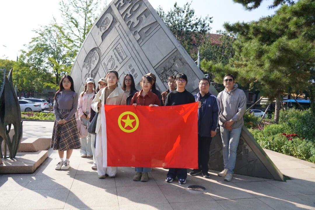 在五四运动纪念碑前,支部组织重温入团誓词。团员们纷纷表示,红色基因的“传承”要以创新的方式践行时代的使命——以青年视角讲好新时代红色文学故事、以专业所长传播红色文化,让红色底色在新时代焕发出更亮眼的青春光彩。