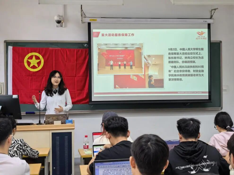 为深入学习贯彻习近平总书记在纪念中国人民抗日战争暨世界反法西斯战争胜利80周年大会上的重要讲话精神,中国人民大学文学院各基层团支部积极行动,开展了形式多样、内容丰富的学习活动,引导青年学子铭记抗战历史,传承伟大精神,勇担时代使命。
