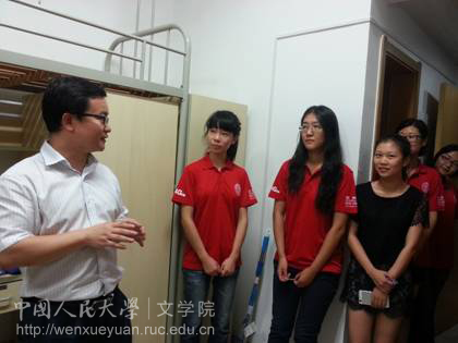 朱副院长首先转达了文学院孙郁院长对汉语国际教育专业硕士14级新生的慰问。同时,他表示汉教专业的学生既是人大苏州校区的一份子,更是文学院的一份子,对同学们来到人大表示热烈欢迎。随后,朱副院长逐层参观了学生宿舍,询问了同学们生活的相关细节,表示在生活上会尽力为同学们提供帮助。在看望同学的同时,朱副院长也特别指出,对于汉教专业这种延伸办学方式,本部会不断派出优秀的老师以多种形式为大家授课、讲学,并且邀请国内外权威的专家学者为同学们做讲座,希望同学们用好资源,努力学习专业知识。