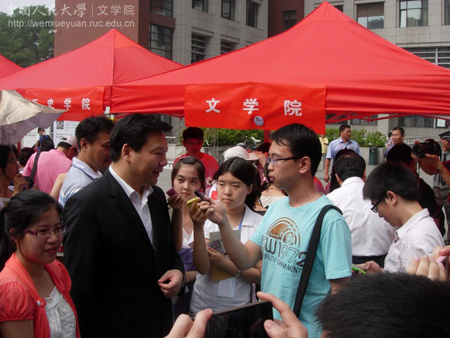 十时二十余分,陈雨露校长来到我院展台前参观并购书以示支持,同时,他表示我院义卖活动非常有特色。