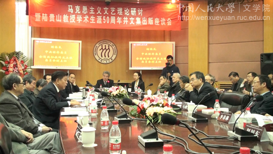 2011年10月29日,由中国人民大学文学院主办、全国十四家高等院校协办的“马克思主义文艺理论研讨暨陆贵山教授学术生涯五十周年并文集出版座谈会”在逸夫会议中心举行。本次座谈会分为开幕式、大会发言和自由发言三个阶段进行,来自全国多所大学和研究所的马克思主义文艺理论研究专家和学者齐聚一堂,围绕陆贵山教授的学术研究生涯以及马克思主义文艺理论的一系列话题展开了热烈而富有建设性的讨论。