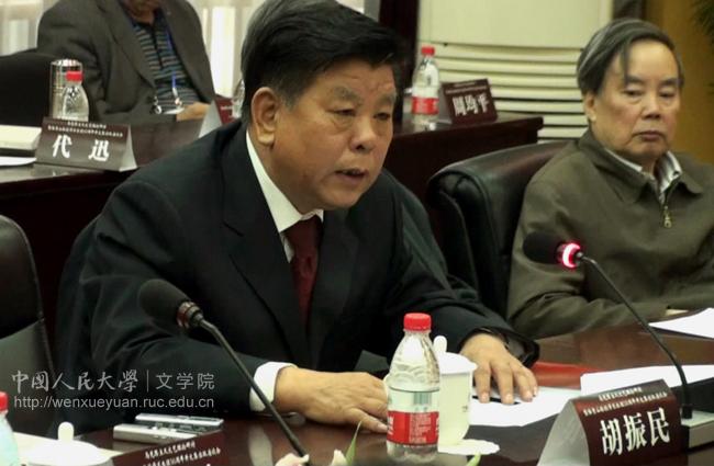 中央候补委员、全国政协教科文卫体委员会副主任胡振民在发言。右为中国文联原副主席李准