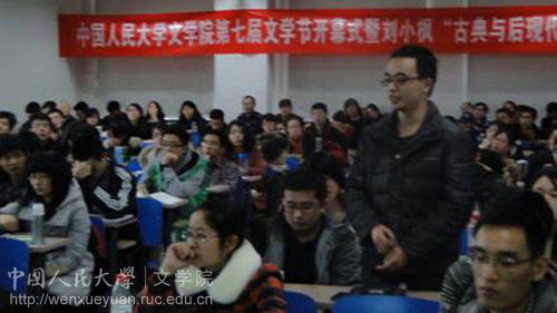 到此,本届文学节开幕式暨刘小枫教授“古典与后现代的诗术”讲座圆满结束。开幕式由我院2011级本科生尚思宇同学主持。我院徐楠副院长、院党委胡玲莉副书记、院团委黄彦菲书记也参加了开幕式及讲座。本届文学节同时受到我校历史学院、哲学院、理学院等兄弟院系、中国青年政治学院等兄弟院校的关注。