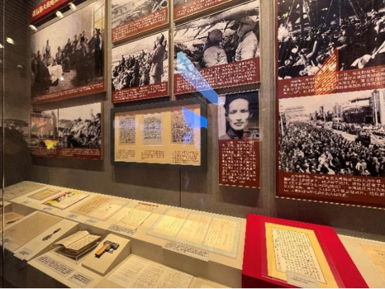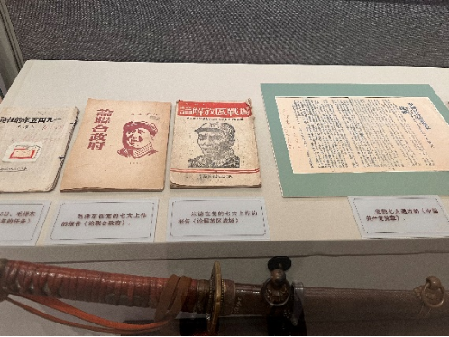 在“新民主主义革命通史陈列展”区,同学们重点聚焦抗日战争部分。泛黄的《论持久战》手稿、八路军战士用过的绑腿、平民支援前线的独轮车……丰富的展品还原了全民族抗战的艰辛历程。许多同学表示:“作为文学院学生,我更关注史料中的人文细节,这些展品让我看到,抗日战争的胜利不仅是军事的胜利,更是全民族同心同德、共赴国难的精神胜利。”