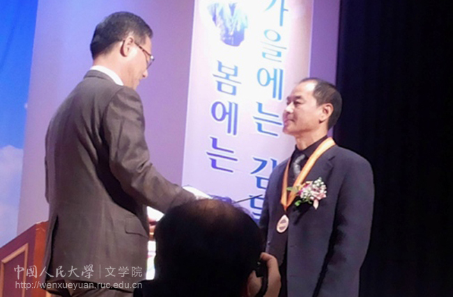 多年来,韩国昌原文学节在韩国文学界一直很有影响力。四年前,昌原文学节在原有多种奖项的基础上新设立了国际诗歌奖(The Changwon KC International Literary Prize for Poetry),奖给做出重要贡献、具有突出影响力的国际诗人。这是韩国目前唯一的国际诗歌奖,前三届分别颁给了中国诗人北岛,法国著名诗人Mouchard Claude,美国著名女诗人、普利策奖得主Tracy K.Smith。第四届颁给了我院王家新教授。这彰显了中国当代诗歌的生命热力。正如王家新教授在获奖演说所指出的:“这不单是对我个人的奖励,这也是对中国当代诗歌的高度看重。”