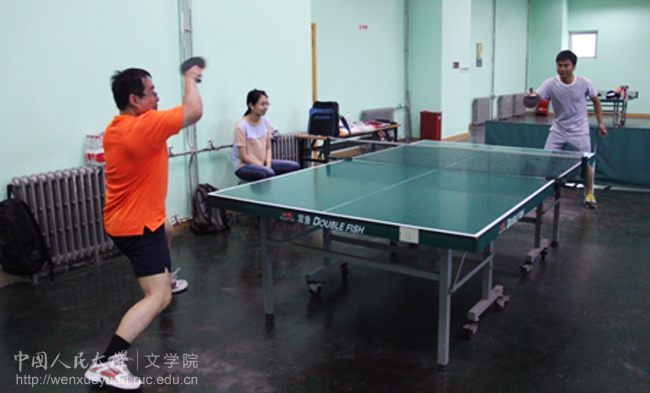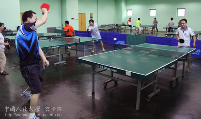 5月28日中午,2014文学院教工乒乓球趣味擂台赛在世纪馆乒乓球厅举行。比赛采取攻擂和守擂的方式,守擂方由获全校乒乓球团体赛第三名的三名主力队员(李禄兴、曾艳兵、徐承伟)组成。攻擂方由我院教工组成,根据报名人数抽签分为三个组。