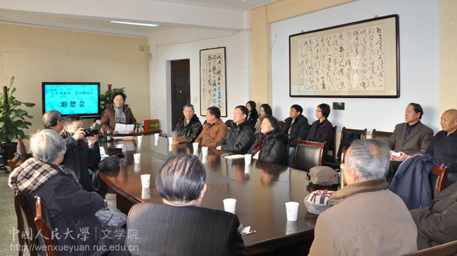 2月27日,文学院王宗伯教授、胡瑞昌教授追思会在人文楼二层会议室举行。会议由对外汉语中心离退休支部书记郭先珍同志主持,我院党委副书记王林英、工会主席王仙亮出席了会议。北京市语文现代化学会的13名会员、对外汉语中心的多名离退休教师及两位老先生生前的好友参加了会议并发表了感言。