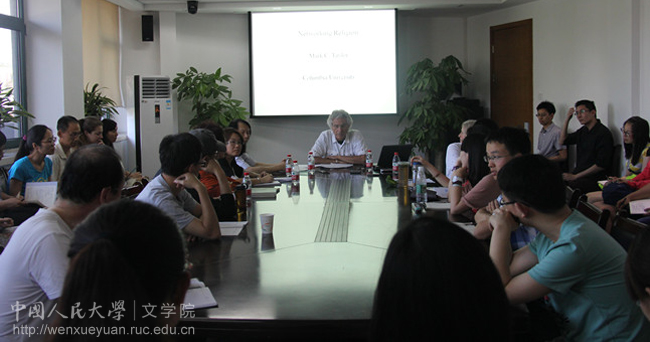 5月29日下午,美国著名学者、哥伦比亚大学宗教系主任马克·泰勒(Mark Taylor)教授应邀访问我院,并在人文楼二层会议室作了题为“网络化的宗教”(Networking Religion)的演讲。哥伦比亚大学比较文学系刘禾教授,我院耿幼壮教授、王敦副教授、张靖博士以及来自各学院的众多学生到场聆听。