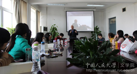 4月17日下午,以色列独立导演丹•沃尔曼来到中国人民大学做专题讲座。此次活动由文学院电影学专业陈阳老师主持,潘天强老师、孙柏老师、苏涛老师等出席。